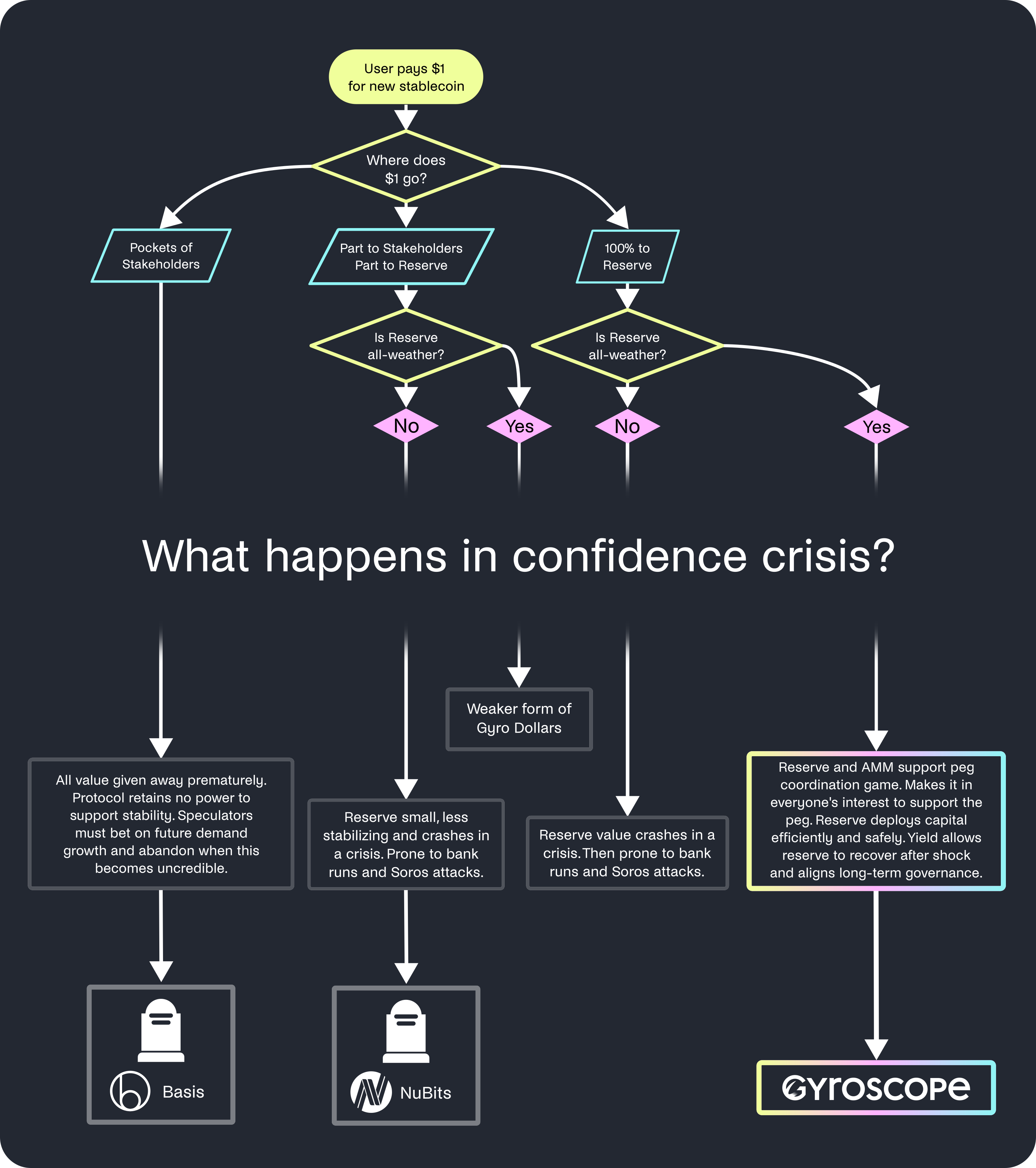 For further discussion of how Gyroscope compares to algorithmic stablecoins, including resistance to bank runs, read our article here.