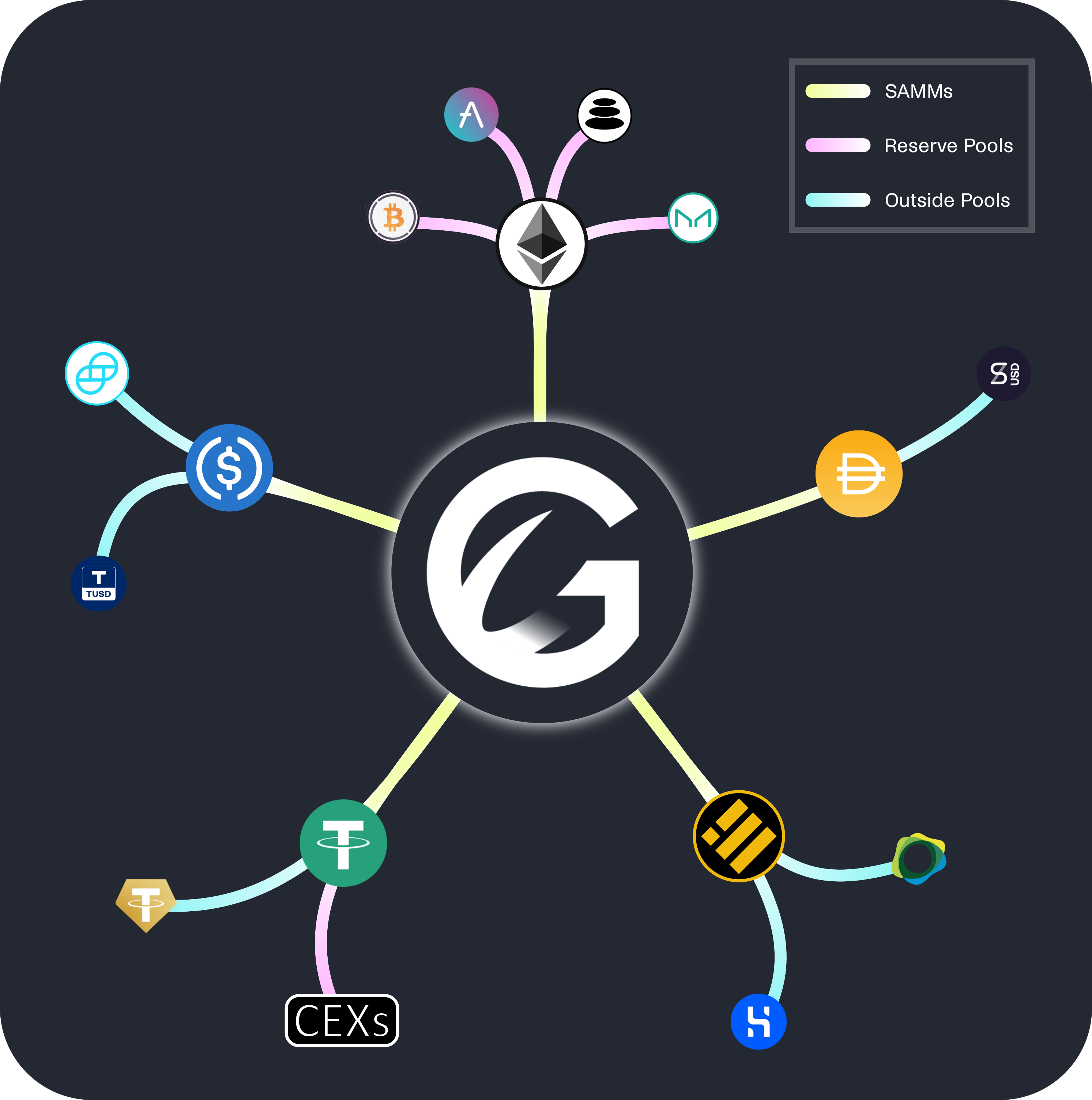 Stylized visualization of the Gyroscope stablecoin trading network